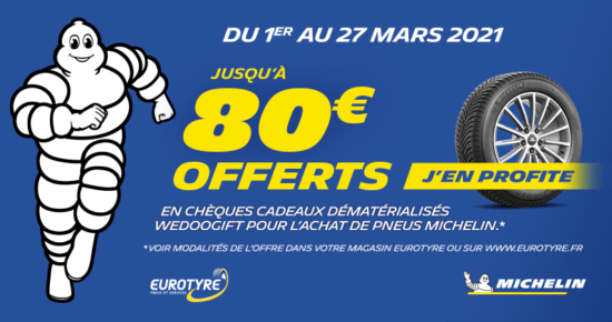Il y a toujours une promo pneu intéressante avec Eurotyre ! Pneus pas cher pour un budget serré, cadeau exclusif, remboursement… notre réseau de garagistes tisse des partenariats avec les plus grandes marques.